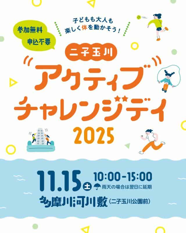 世田谷区玉川総合支所および一般社団法人二子玉川エリアマネジメンツは、11月15日(土)に、二子玉川公園前 多摩川河川敷にて、子どもも大人も楽しめるスポーツイベント「二子玉川アクティブチャレンジデイ2025」を開催しました。